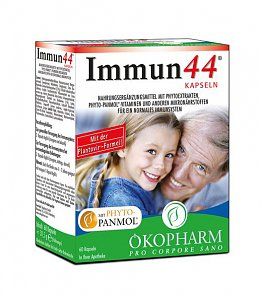 - Die Immun44® Kapseln von ÖKOPHARM® unterstützen das Immunsystem mit Vitamin A, B6, B12, C, D, Folsäure sowie den Spurenelementen Zink und Selen für eine normale Funktion des Immunsystems.