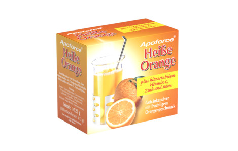 Getränkepulver zur Herstellung eines Heißgetränkes mit Orangengeschmack plus hitzestabilem Vitamin C, Zink und Selen.