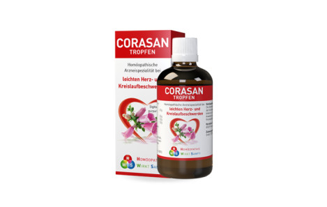 Corasan Tropfen sind eine homöopathische Arzneispezialität zum Einnehmen bei leichten Herz- und Kreislaufbeschwerden mit der ...