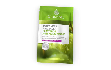 Mit der DermaSel® Totes Meer Mineralien Glättende Anti-Aging Maske helfen Sie Ihrer Haut den natürlichen Alterungsprozess entgegenzuwirken. Ab dem 25. Lebensjahr beginnt der sichtbare Teil des Alterungsprozesses der Haut - eine Tatsache, der mit Cremes allein nicht ausreichend begegnet wird. Mindestens einmal pro Woche braucht die Haut einen Energieschub aus konzentrierter Wirkkraft, angereichert mit DHB 400®, Q10 und Ceramide, der die Fältchen mildert und neuer Faltenbildung aktiv vorbeugt.