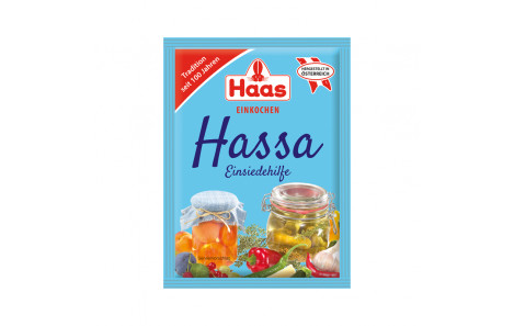 Hassa – die Einsiedehilfe von Haas – hilft verlässlich bei der Konservierung von rohem oder gekochtem Gemüse, Marmeladen und Fruchtsäften aller Art. Sie wird zur Konservierung bei vor allem zuckerarmen Nahrungsmitteln als Schutz vor Gärung und Schimmel eingesetzt.