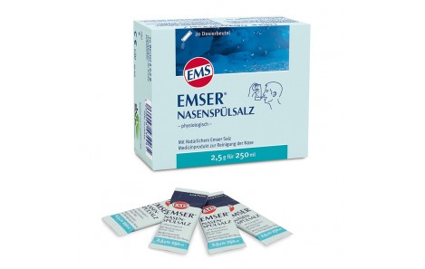 Bei akut oder chronisch entzündlichen Erkrankungen der Nase empfehlen wir Emser Salz im praktischen Portionsbeutel 2,95 g für 250 ml und für Kinder 1,475 g für 125 ml.