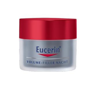 Eucerin HYALURON-FILLER Nachtpflege für alle Hauttypen wirkt über Nacht in den verschiedenen Hautschichten fehlender Festigkeit der Haut und dem Verlust von Volumen entgegen.