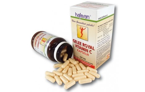 hafesan Gelee Royal Vitamin C Kapseln enthalten 250 mg hochwertiges lyophilisiertes (gefriergetrocknetes) Gelee Royal Pulver und 250 mg Acerola Extrakt (enthält natürliches Vitamin C).