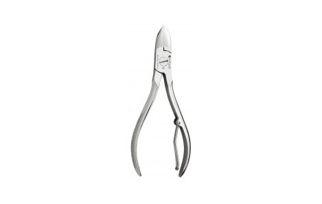 Geschmiedete Zange in Solinger Top-Qualität. Gehärtet, geschärft und geprüft. Die Nagelzange schneidet auch dicke oder besonders harte Nägel glatt und präzise ohne zu quetschen oder zu splittern. Zange öffnen, Feder umklappen und unter sanftem Druck lassen sich mit der gebogegnen Schneide glatte Nagelkanten schneiden.