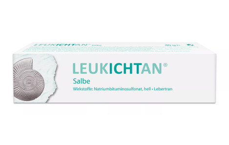 Leukichtan® – Salbe ist eine Salbe mit einem Wirkstoff Natriumbituminosulfonat, hell, aus der Gruppe der sulfonierten Schieferöle. Sie wirkt entzündungshemmend, bakterienabwehrend sowie durchblutungssteigernd.