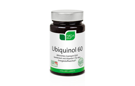 Coenzym Q10 gehört zu den Vitaminoiden. Das sind vitaminähnliche Substanzen. Der Körper kann sie zumeist selbst bilden. Wir können sie aber auch über die Nahrung zu uns nehmen. Coenzym Q10 existiert in zwei Formen, als Ubiquinon und Ubiquinol. Coenzym Q10 in Form von Ubiquinon muss im Körper erst in die aktive Form Ubiquinol umgewandelt werden, während Ubiquinol gleich direkt ohne weitere Umwandlungsschritte zur Verfügung steht. Für NICApur® Ubiquinol wird der patentierte Qualitäts-Rohstoff Kaneka Ubiquinol™ eingesetzt, ein 100% reines, naturidentes Ubiquinol. Die perfekte Ergänzung zu Ubiquinol bildet Vitamin C, um den Energiestoffwechsel zu unterstützen und zum Schutz der Zellen vor oxidativem Stress.