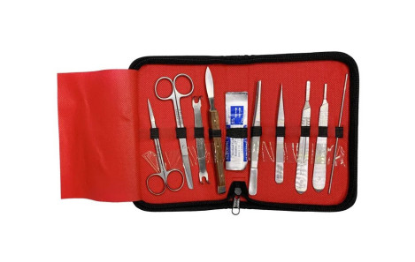 Präparier Besteck Set im Etui mit Zippverschluß 1x Schere 14cm stumpf/spitz 1x Schere 11cm spitz/spitz 1x Skalpellgriff Nr. ...